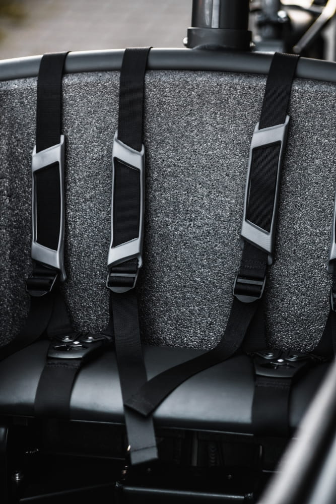 Ławeczka dla dwójki dzieci, trzypunktowe pasy bezpieczeństwa.