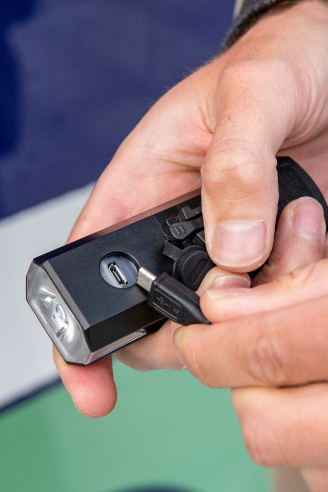 Brompton 500LM Front Light to wydajna, ładowalna lampka przednia LED stworzona we współpracy z renomowaną marką CatEye, dedykowana wszystkim modelom rowerów Brompton. Generuje szeroki strumień światła o mocy 500 lumenów, zapewniając doskonałą widoczność i bezpieczeństwo podczas jazdy po zmroku i w trudnych warunkach pogodowych. Lampka montowana jest na specjalnym uchwycie przy widelcu, dzięki czemu nie koliduje z przednimi torbami Brompton i nie wymaga demontażu podczas składania roweru – całość mieści się w złożonej konstrukcji.