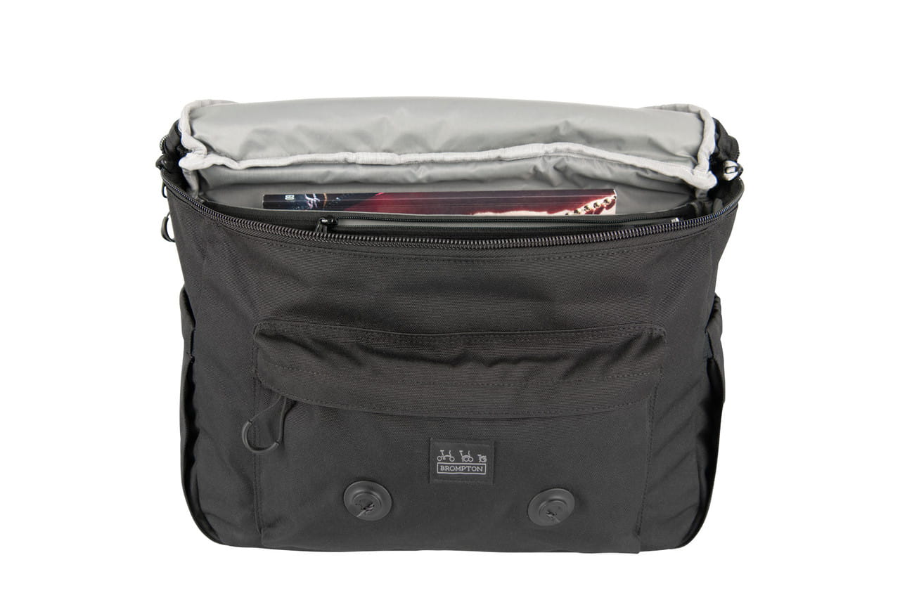 Wykonana z przędzy poliestrowej z recyklingu, z wyściełanym tylnym panelem z siateczki, ta torba ma dwie rozszerzalne kieszenie boczne i inteligentny system magnetycznych zatrzasków, aby paski bezpiecznie trzymały się na miejscu podczas jazdy. Idealna torba na podróże, które pomagają podczas odcinków poza rowerem lub dla tych, którzy wolą rozłożyć ciężar na dwa ramiona.