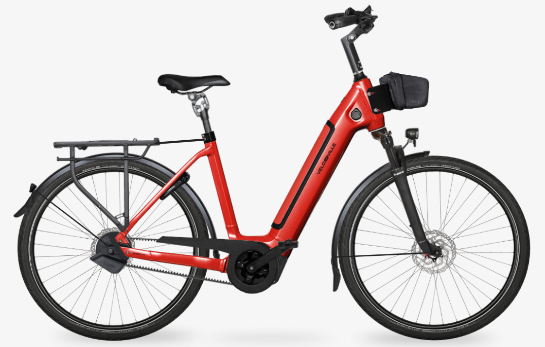 Velo de Ville AEB 890 PRO 28" to nowoczesny rower elektryczny, który łączy w sobie wszechstronność i elegancję. Prezentowany w błyszczącym wykończeniu koloru Scarlet Red z ramą typu Wave (45 cm), stanowi standard elegancji poprzez jego żywy design i dopracowane detale.