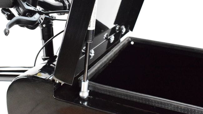 Bezpieczny montaż: skrzynia jest mocowana bezpośrednio do ramy roweru Bullitt, co zapewnia stabilność nawet podczas dynamicznej jazdy.