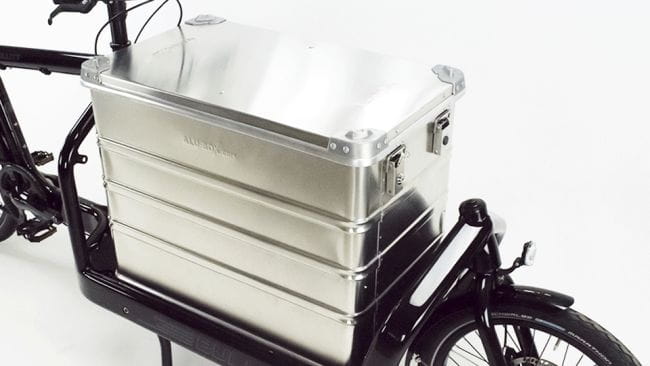Skrzynia aluminiowa Bullitt to solidne, zamykane rozwiązanie do transportu narzędzi, części zamiennych lub innych cennych przedmiotów na rowerze cargo Bullitt. Skrzynia wykonana jest z lekkiego, lecz bardzo wytrzymałego aluminium, zapewniając odporność na warunki atmosferyczne i uszkodzenia mechaniczne.
